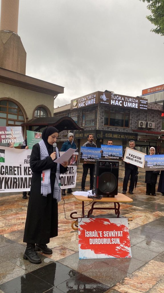 Türkiye’nin İsrail ile devam eden ticaretinin derhal kesilmesi gerektiğini dile getiren eylemciler, İsrail ile yapılan ticaretin, Gazze’deki açlık ve yıkımı finanse ettiğini ve bu ticaretin devam etmesinin bir ihanet olduğunu belirttiler. “İsrail’le tüm ilişkiler derhal kesilmeli!” sloganıyla İsrail’e karşı tavır alınması gerektiğini vurguladılar.