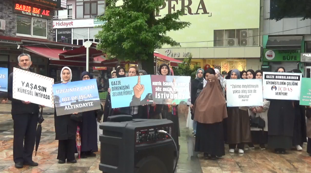 Düzce’de, Filistin halkının maruz kaldığı zulme dikkat çekmek ve destek olmak amacıyla düzenlenen eylemde, Filistin dostları İsrail’in gözü dönmüş vahşeti karşısında bir kez daha seslerini yükseltti. Eylemde kullanılan ifadelerle Filistin halkının yaşadığı acı ve çaresizlik vurgulanarak, dünya tarihinde eşi benzeri görülmemiş bir katliam ve kuşatma altında oldukları haykırıldı.
