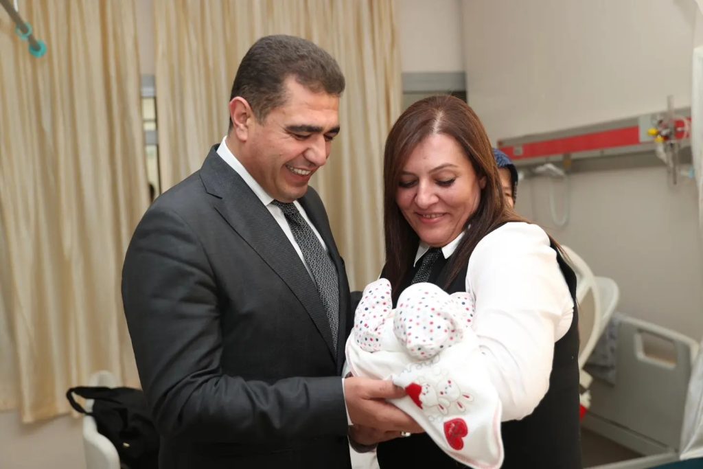 Düzce Valisi Selçuk Aslan, eşi Pınar Aslan ile yılın ilk bebeği Ege’yi hastanede ziyaret ederek, sağlık çalışanlarının yeni yılını kutladı. Aslan, yeni doğan bebekleri ve ailelerini tebrik etti.