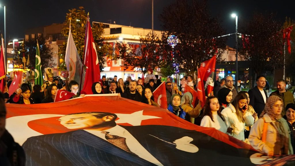 Düzce’de Cumhuriyet’in 101. yıl dönümü ve 29 Ekim Cumhuriyet Bayramı dolayısıyla fener alayı yapıldı.