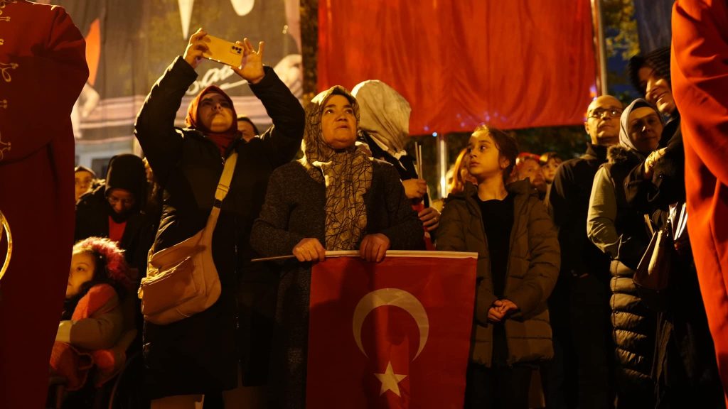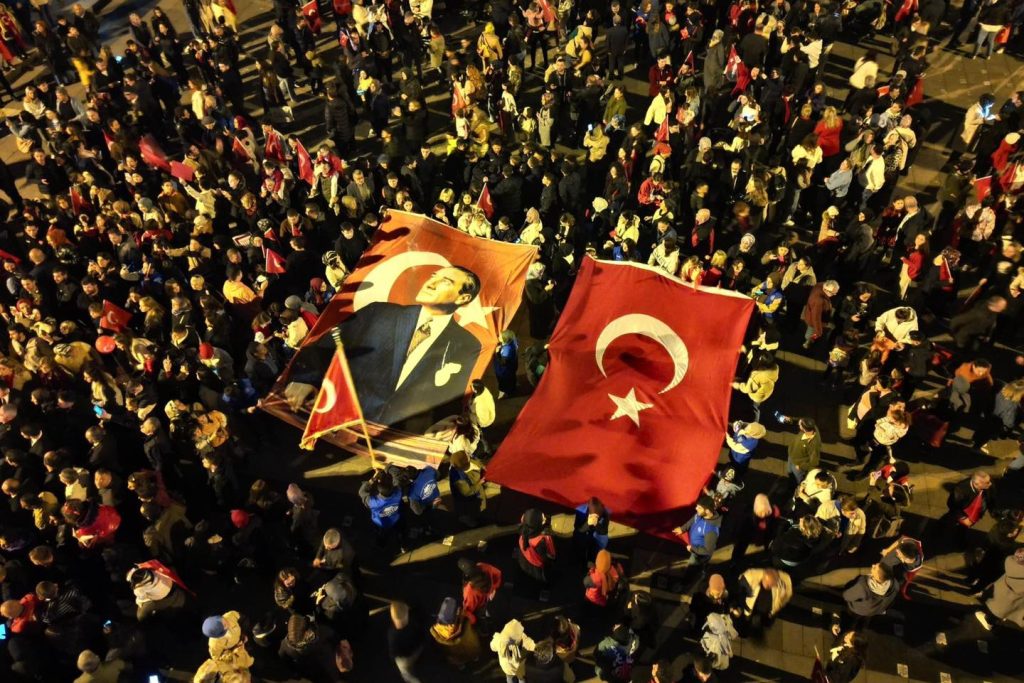 Ellerinde Türk bayraklarıyla meydanı dolduran vatandaşlar, bando ve mehteran takımının çaldığı marşlara eşlik etti.