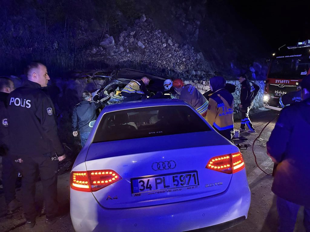 Meydana gelen kazada Düzce’den Gölyaka istikametine gitmekte olan 81 GB 804 plakalı Eren Ö. idaresinde ki araçta bulunan Beyzanur B. sıkıştığı araçtan Düzce Belediyesi Kaza Kırım ekipleri tarafından kurtarılırken Talha Mehmet A. yaralandı, diğer yolcu Zehranur B. ise olay yerinde hayatını kaybetti. 34 PL 5971 plakalı araçta bulunan yolcu Bayram E. ise hafif yaralandı.