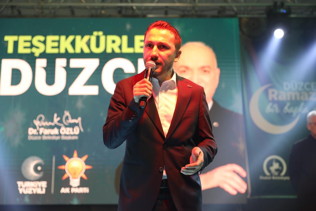 Büyük bir coşku ile gerçekleşen kutlamalarda bir konuşma yapan AK Parti Düzce İl Başkanı Hasan Şengüloğlu, “Başta AK Parti’mizin değerli üyeleri, dava arkadaşlarım olmak üzere tüm hemşehrilerimize teşekkür ediyorum. Teşkilatımıza teşekkür ediyorum. Özellikle kadın kollarımıza, merkez ilçe, gençlik kollarımıza, sandık müşahitlerimize. İnşallah bundan sonra sayın belediye başkanımız şehrimize hizmet etmeye devam edecek. Günün 16 saatini Düzce’mize ayıran Başkanımız. Bizleri yalnız bırakmadınız, Cumhurbaşkanımıza desteğinizi bir kez daha gösterdiniz. Sizlerden Allah razı olsun. Düzce’mize hizmet için yeniden çalışmaya devam.”