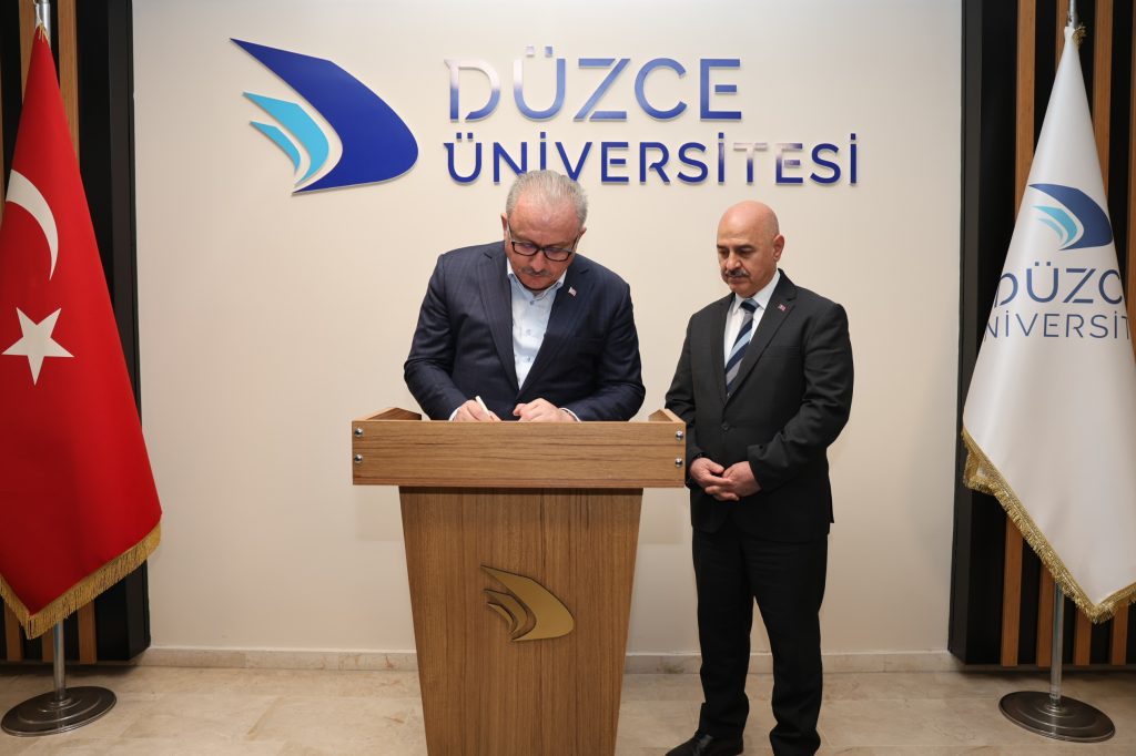 Programın sonrasında Prof. Dr. Mustafa Şentop, Düzce Üniversitesi Rektörü Prof. Dr. Nedim Sözbir’i ziyaret ederek Düzce Üniversitesi Anı Defteri’ni imzaladı.