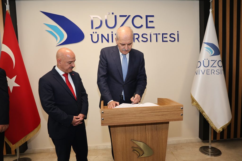 Düzce Üniversitesi 2024-2025 Akademik Yılı Açılış Töreni’ne katılan Türkiye Büyük Millet Meclisi (TBMM) Başkanı Prof. Dr. Numan Kurtulmuş, akademik yıl açılış dönemi ilk dersiyle Düzce Üniversite’sini onurlandırdı.