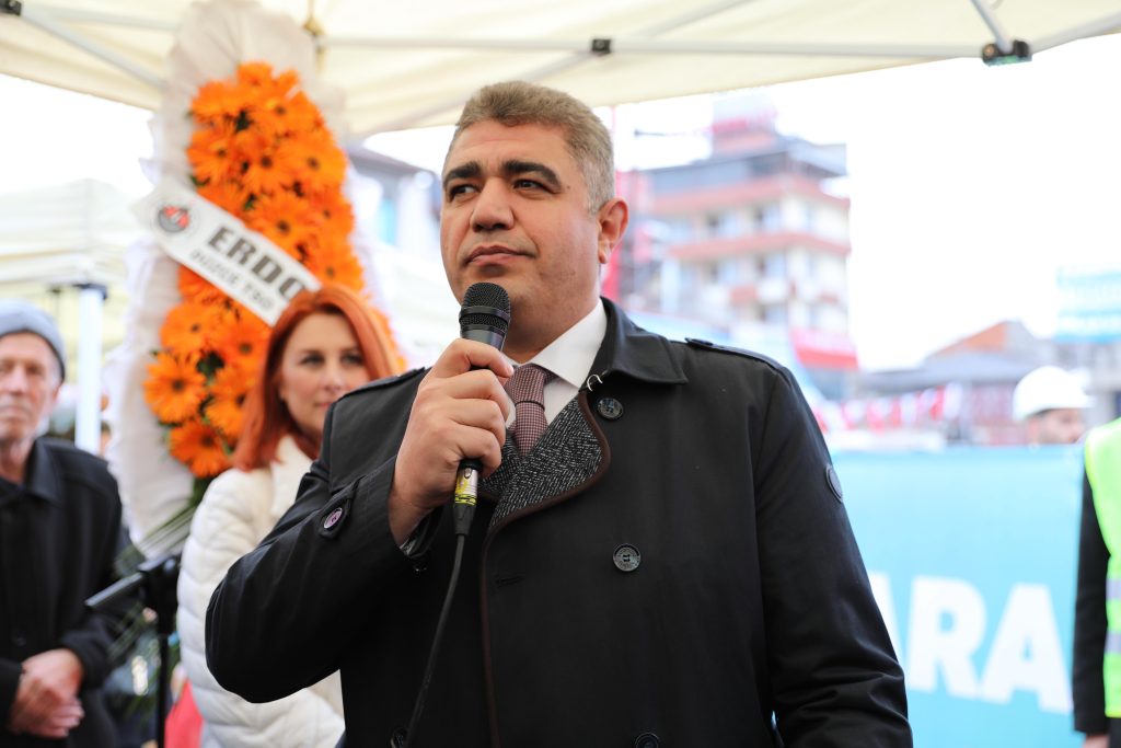 Temel atma töreninde bir konuşma gerçekleştiren Başkan Dr. Faruk Özlü, “Bugün çok mutluyum. Hayatımın en mutlu günlerinden birini yaşıyorum ve 4 yıldır bugünü bekliyordum. Buranın hikayesi uzun. Ben kendi payıma düşeni söyleyeyim. Ben kişilik olarak, problem çözmeyi çok severim. Burası da Düzce’nin bir kronik, kangren olmuş problemi idi. Ben başladığımda 20 yıllık sorundu. Bugün 24 yıllık sorunu konuşuyoruz. Buradaki hissedarlar arasında mutabakat sağlamak, onları anlaştırmak bir hayli zor oldu” dedi.